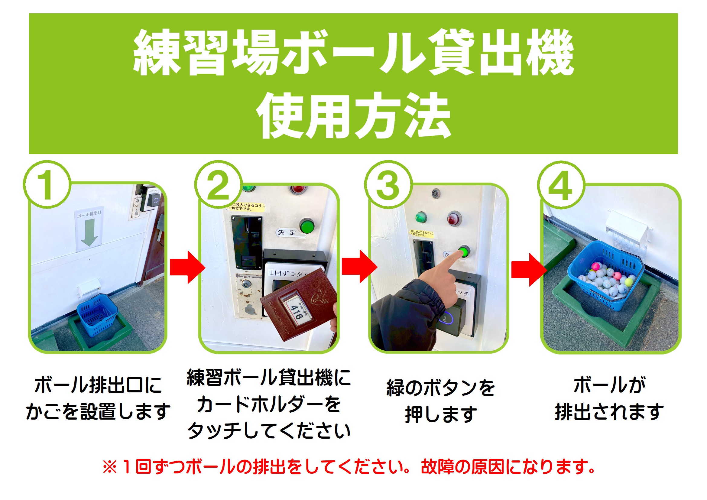 【コイン貸出機システム変更のお知らせ】2月19日(木)より、コイン貸出機のシステムを変更いたします。これまでマスター室にてコインを購入していただいておりましたが、ロッカーキーで練習場ボール貸出機をご利用いただく方式へと変更となります。当日は、場内掲示をご参考のうえ、ご利用ください。