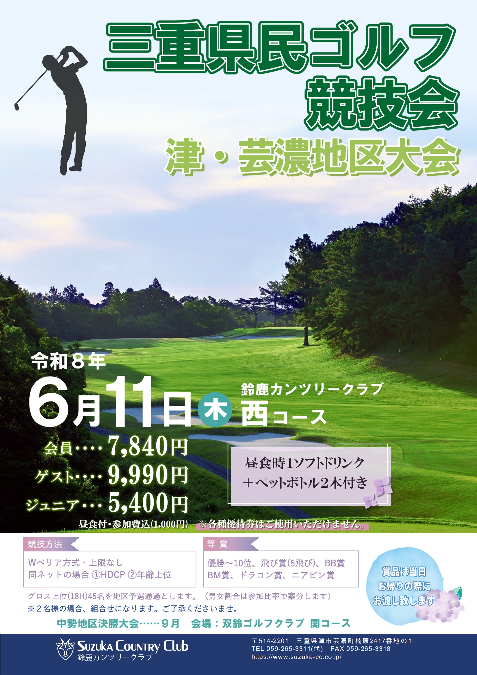 中勢地区決勝大会は9月 双鈴ゴルフクラブ 関コース